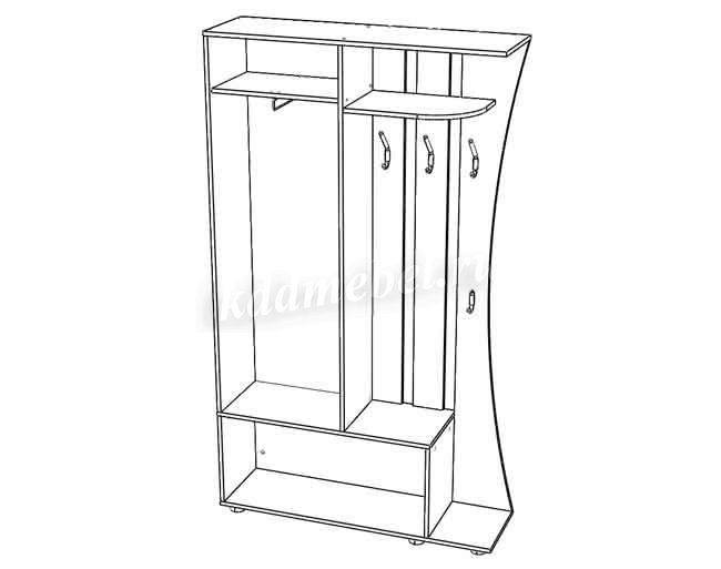 Надёжная панель с оригинальным изогнутым краем, крючками для одежды, полкой для аксессуаров, и верхним карнизом, на котором можно хранить головные уборы.