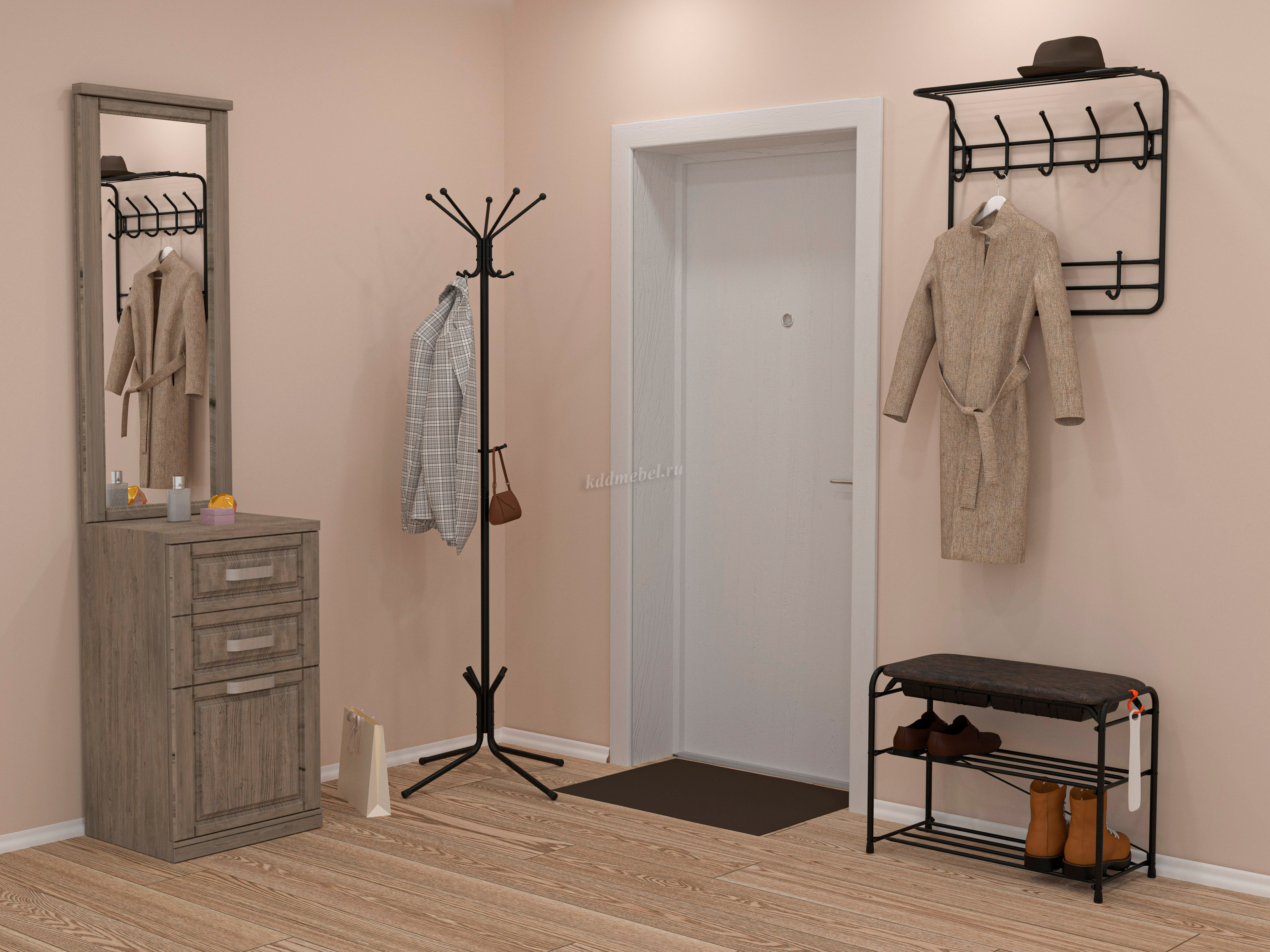- внутри верхней части вешалки между крючками удобно размещаются перчатки, шапки и т.п.