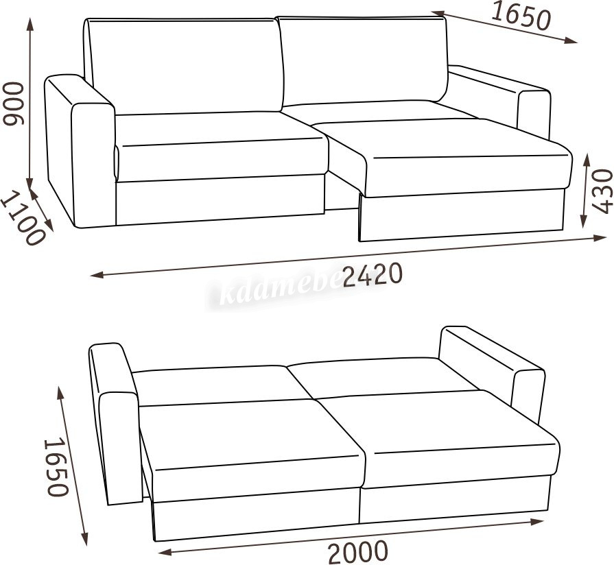 Размер модуля дивана в разложенном виде: 1000х1620х430 мм