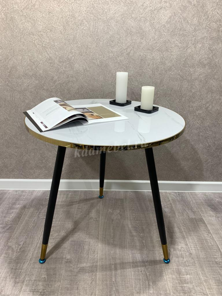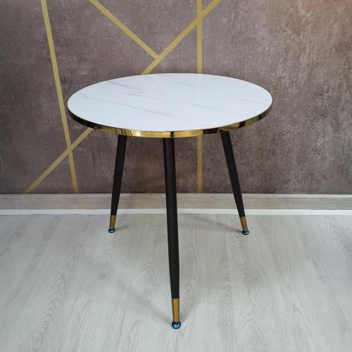 • Стол СТ-110 (Белый мрамор/Ноги серебряные/Царга золото)