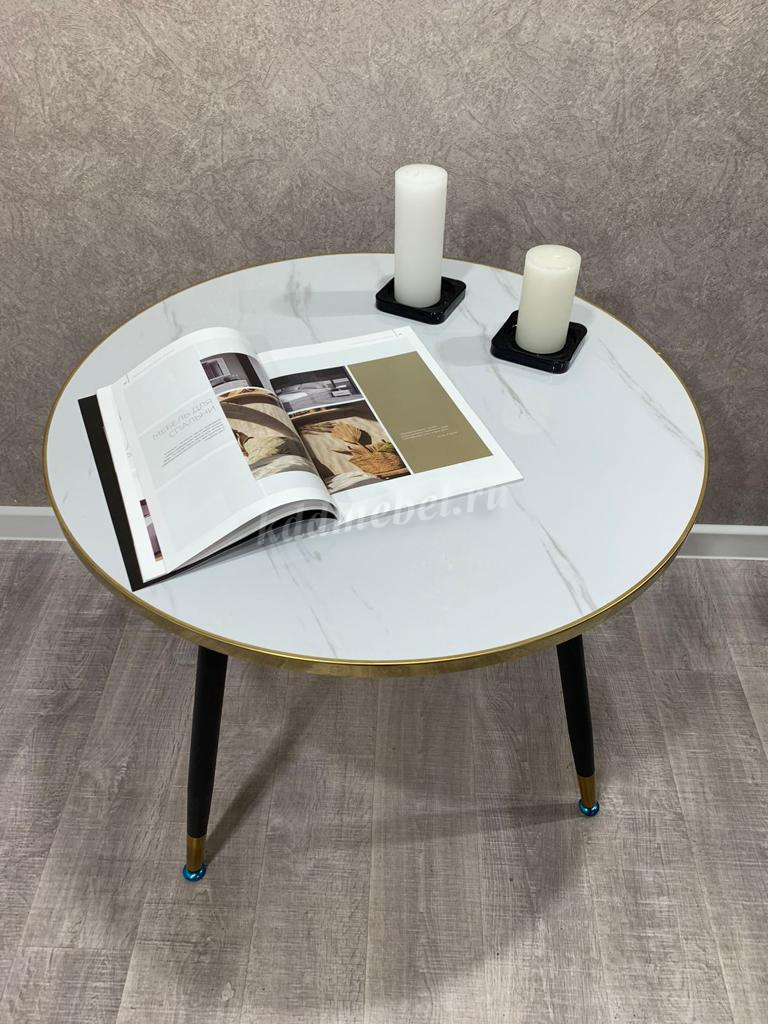 Стол обеденный Арчи-3 0.8 (Белый мрамор 3027/Опоры черные)