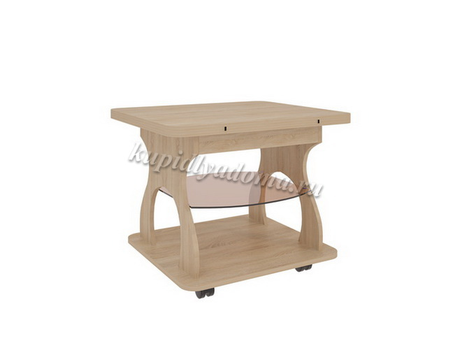 Стол журнальный раскладной "Купер" имеет прямоугольную форму с чуть закругленными углами крышки стола. Это раскладная модель, что позволит вам увеличить размер журнального стола в два раза. Для этого вам потребуется только откинуть одну половину крышки стола. При разложении стол получается большой, что позволит свободно усадить за него до 12 человек. Под основной крышкой стола имеется стеклянная полка для газет, книг, журналов и пультов. Интересный изгиб "ножек" придает столу оригинальный вид. Стол журнальный раскладной "Купер" на роликах, поэтому вы сможете легко и свободно передвигать его по всей комнате. г. Ижевск.