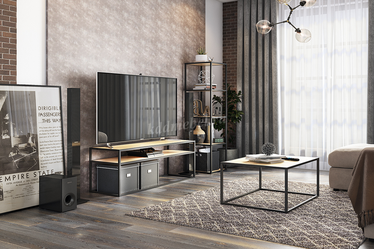 Описание Стол журнальный Стиль 1 (Черный муар/Дуб сонома)
